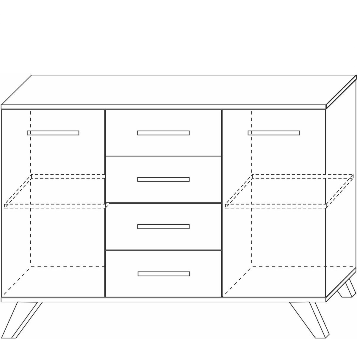 Комод большой серии «Вега Скандинавия» — это стильный модуль для спальни или гостиной. Вы можете установить на него телевизор или украсить статуэтками, вазами или рамочками с любимыми фото. Удобство хранения в закрытом виде обеспечивают 4 выдвижных ящика, а также большие отделы с распашными дверцами.